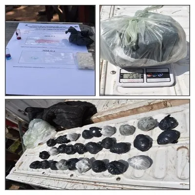 Encontraron 2 kilos y medio de marihuana y 15 gramos de cocaína fraccionados para su distribución. Además, secuestraron una balanza de precisión, elementos de recortes y más de 50.000 pesos en efectivo. Continuando con el allanamiento, también encontraron un revólver calibre 32, cuatro cartuchos de diferentes calibres, herramientas, tres chapas Zinc y partes de automóviles.