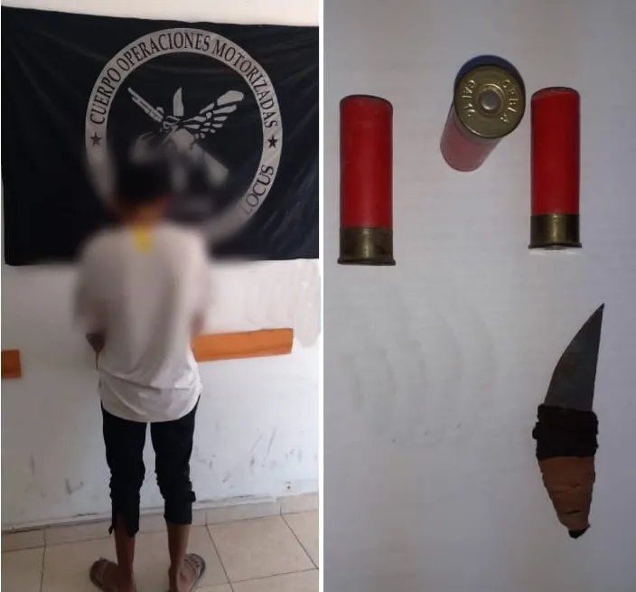 Al llegar al lugar la policía constata lo denunciado por los vecinos y los jóvenes, al notar la presencia policial, se dan a la fuga en distintas direcciones. Luego de la persecución, se logró la demora de uno de ellos, un joven de 21 años que, al ser palpado entre sus prendas, le secuestran un cuchillo de fabricación casera y 3 cartuchos calibre 16.
