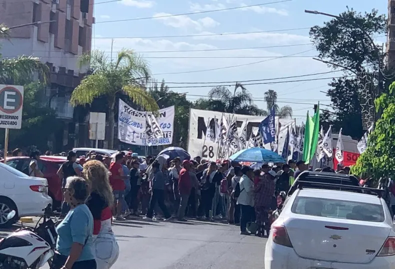 En el escrito se describe que "con una cantidad importante de personas, 500 a 700 aproximadamente, se ocuparon las calles de la ciudad impidiendo el libre tránsito vehicular y de personas. Se concentraron inicialmente sobre avenida 9 de Julio hacia los números descendentes y marchan hasta detenerse frente al edificio de la fiscalía (avenida 9 de Julio 240) recibiendo órdenes e instrucciones de los referentes que encabezan y dirigen su accionar", y se agrega que utilizaron "elementos de percusión, carteles, interceptando la circulación vehicular y peatonal".