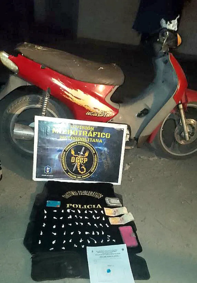 De esa manera, intervino la fiscalía antidrogas N° 1 y dispuso que el hombre sea detenido en la causa de "Infracción a la Ley 23.737". También le secuestraron la motocicleta y la suma de dos mil pesos, además de un celular.