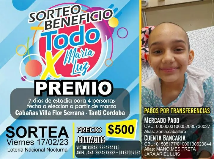 Las personas se pueden contactar al número 3624-373382 para consultarle a Ariel, padre de las menores, sobre sorteos o formas de ayudar. Los únicos CBU habilitados son los que aparecen en la imagen del flyer o los alias zonia.caballero o MANO.MES.TRETA.