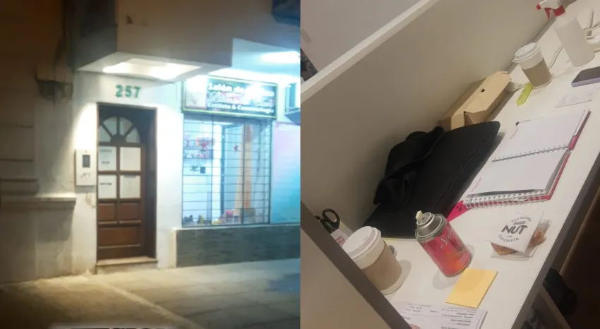 El consultorio se encuentra ubicado sobre calle Santiago Del Estero al 257. Allí, primeramente, un hombre de unos 50-60 años ingresó con una campera tipo piloto color negro, paraguas marrón, cabellos cortos identificándose como F. Adrián y solicitó un turno para el médico clínico, añadiendo que era para su pareja que en ese momento no estaba presente.