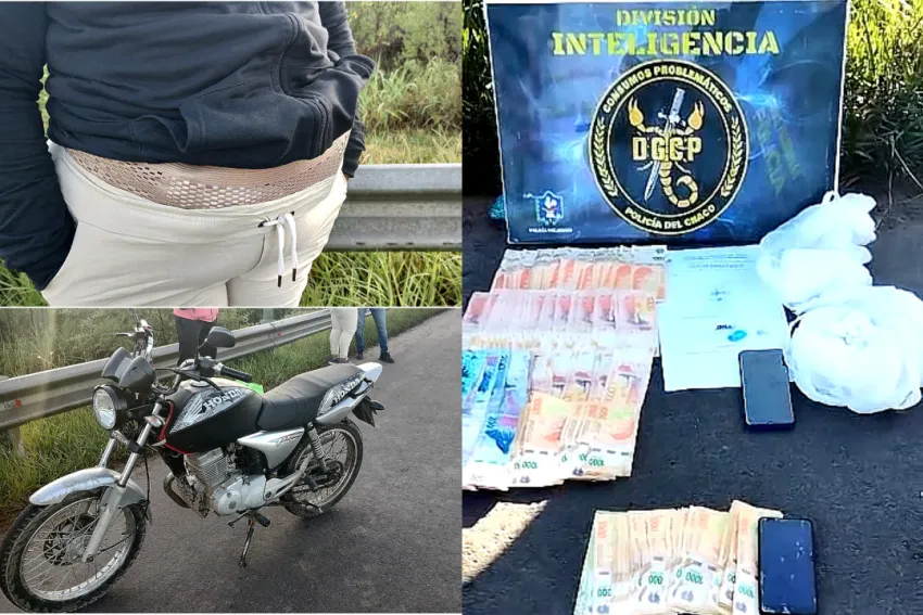 Durante la mañana del sábado, efectivos policiales detuvieron a dos personas que viajaban en motocicleta con cocaína y 148 mil pesos en sus pertenencias. El operativo se dio en el acceso a Puerto Tirol y Ruta Nacional N°16.