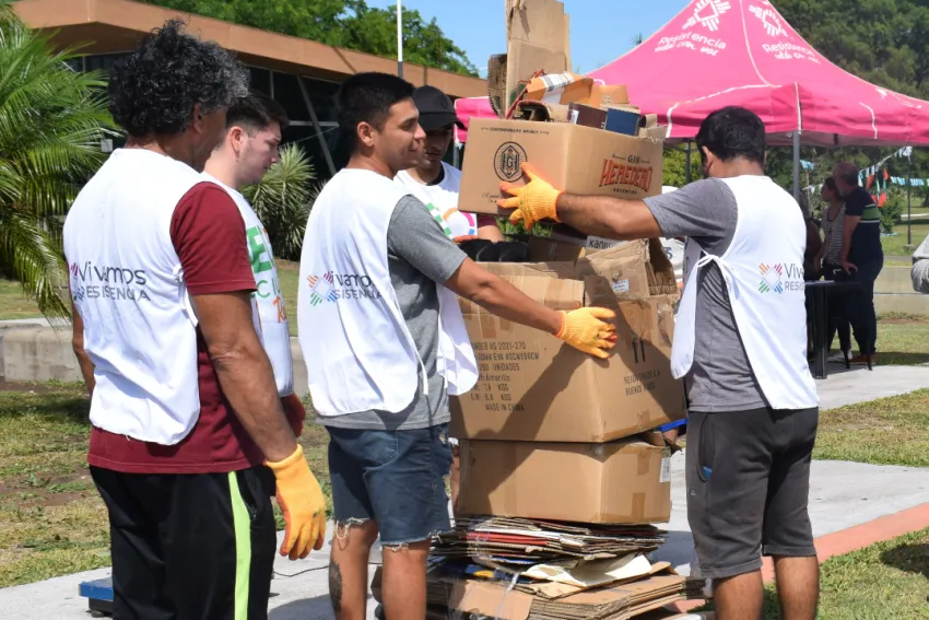 Paola López, representante del Club de Abuelos de Villa Pegoraro, señaló: "Trajimos vidrios, cartones y plásticos, lo venimos haciendo desde el año pasado y nuestro objetivo es sumar puntos para adquirir un aire acondicionado para la escuela del barrio".