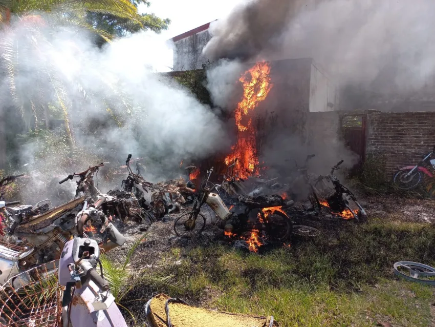 Intenso incendio en el ex depósito municipal de motos en Villa Ángela: se quemaron 10 motocicletas