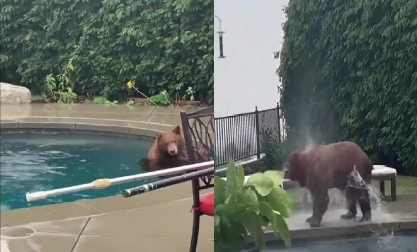 Insólito hecho: un oso disfruto de un baño en una piscina familiar
