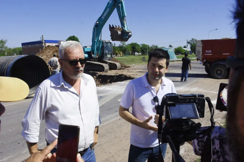 El intendente Bruno Cipolini visitó la obra de ampliación de la sección de alcantarilla, ubicada en la colectora de ruta 95 y avenida Papa Francisco. En la ocasión, estuvieron presentes también el secretario de Obras Públicas, Claudio Gil juntos funcionarios de Vialidad Nacional y Policía Caminera.
