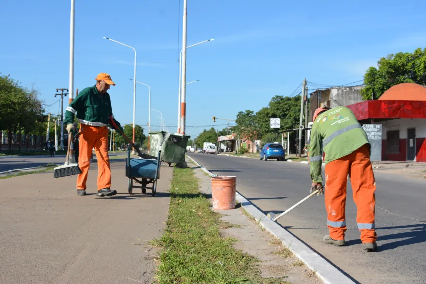 Trabajadores municipales continuaron con las tareas de mantenimiento en avenidas principales de la zona sur de Resistencia, en esta oportunidad sobre el parterre y espacio público de la avenida Chaco, entre Soberanía Nacional y Edison.