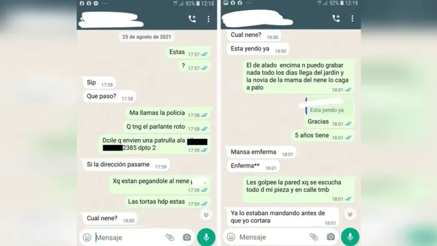 Desde su habitación, una de las vecinas contó cómo escuchaba los golpes que recibía Lucio esa tarde. "¿Me llamás a la policía? Que yo tengo el parlante roto. Porque le están pegando al nene de al lado", dijo. "Todos los días llega del jardín y la novia de la mamá lo caga a palos. Les golpee la pared porque se escucha todo desde mi pieza y en la calle también", relató la mujer.