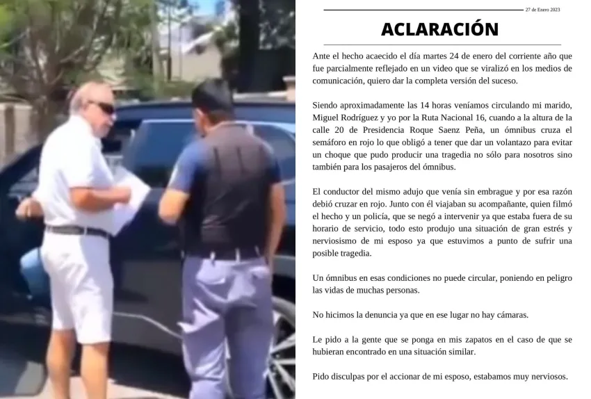 "Ante el hecho acaecido el día martes 24 de enero del corriente año que fue parcialmente reflejado en un video que se viralizó en los medios de comunicación, quiero dar la completa versión del suceso", comienza el comunicado.