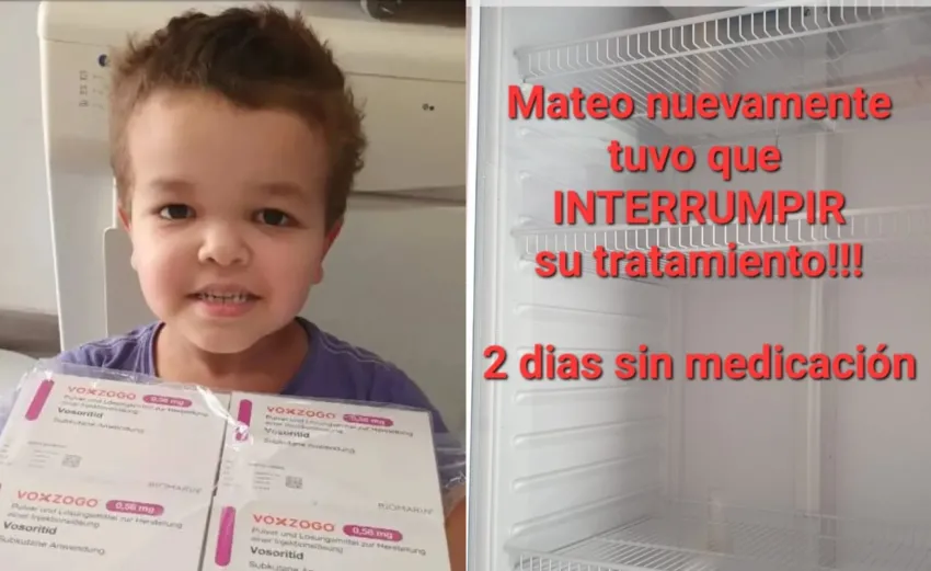 Mateo padece un trastorno del crecimiento de los huesos que ocasiona enanismo, en el caso del pequeño sus síntomas son brazos y piernas cortas, cabeza grande, problemas en la base de cráneo y la columna vertebral. El mismo debe seguir su tratamiento hasta que cumpla los 18 años.
