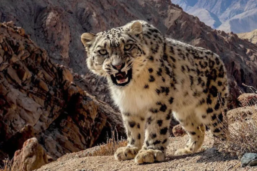 La foto fue tomada en las montañas de la ciudad india de Ladakh, que se encuentra cerca de las fronteras de Pakistán y China y tiene una población aproximada entre 200 a 300 leopardos de las nieves. Estos grandes felinos prosperan en terrenos escarpados y rocosos, debido a esto, no suelen ser captados por los humanos.