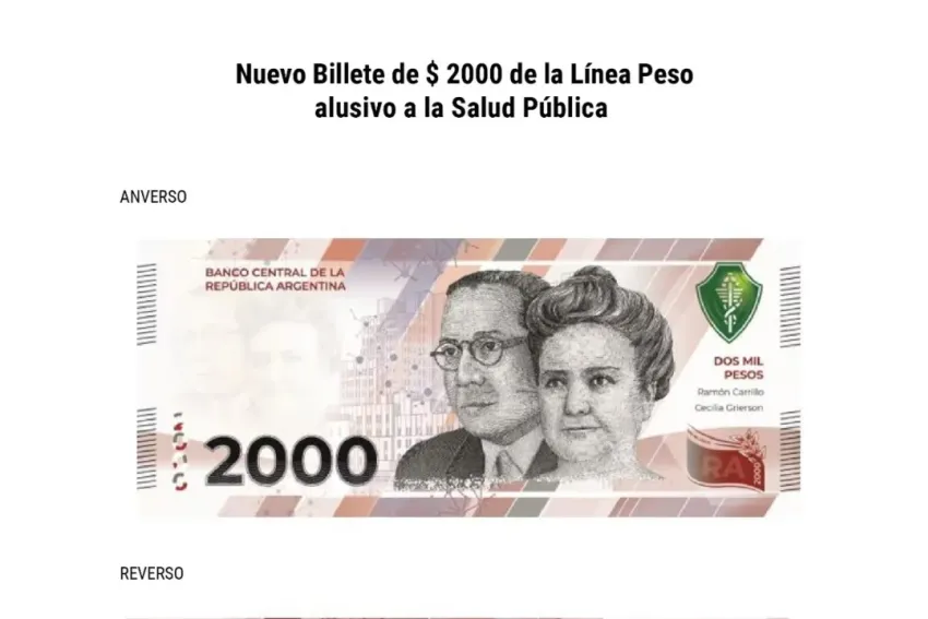 El Banco Central eligió a figuras destacadas de la medicina argentina para la realización del nuevo billete de dos mil pesos. La Dra. Cecilia Grierson y el Dr. Ramón Carrillo protagonizan el papel junto a otras referencias a la salud pública.