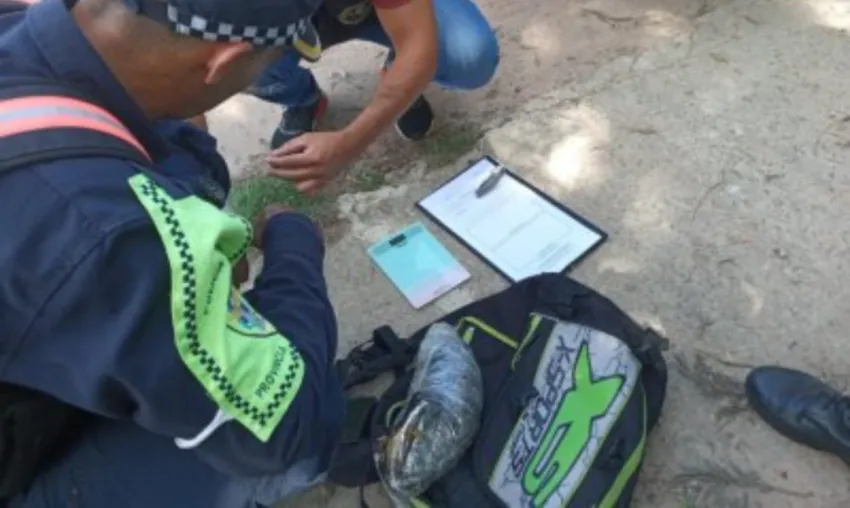 Fue frenado por un control policial, arrojó su bolso y se dio a la fuga: transportaba casi un kilo de marihuana
