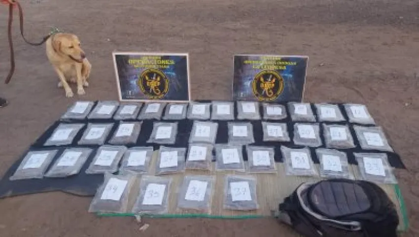 Al abrir la mochila, dieron con varios envoltorios, que luego de la prueba de campo, se confirmó que era marihuana. Con un total de 19.314 kilogramos, a la misma le notificaron la Detención por "Supuesta Infracción a la Ley N° 23.737".