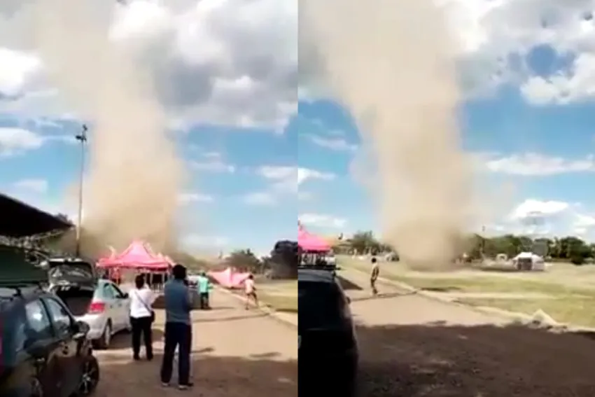 Uno de los presentes, filmó el momento en el que el fenómeno climático se desplazaba por el lugar. Las personas se mostraron atónitas por la polvareda que se levantó frente a ellos.