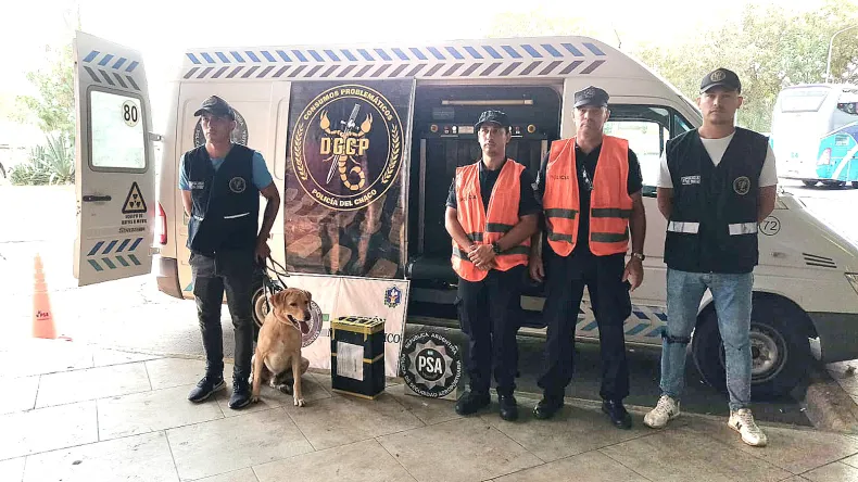 Durante las primeras horas de esta mañana, los efectivos de la División Microtráfico que desarrollaban tareas de control y detección de posibles cargamentos con sustancias prohibidas, en conjunto con personal de Policía de Seguridad Aeroportuaria en la terminal de ómnibus de Resistencia, con la utilización del Escáner Móvil y el trabajo del Can Antinarcóticos "Balton", inspeccionaron los bolsos de pasajeros y también encomiendas y paquetería que ingresaba y egresaba de los ómnibus.