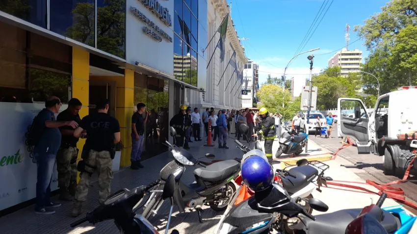 A través de un llamado de alerta por parte de un empleado de la División Bancaria, las fuerzas policiales y el equipo de Bomberos tomaron conocimiento del incendio que se produjo en la calle Güemes al 50, puntualmente en el edificio de Lotería Chaqueña.