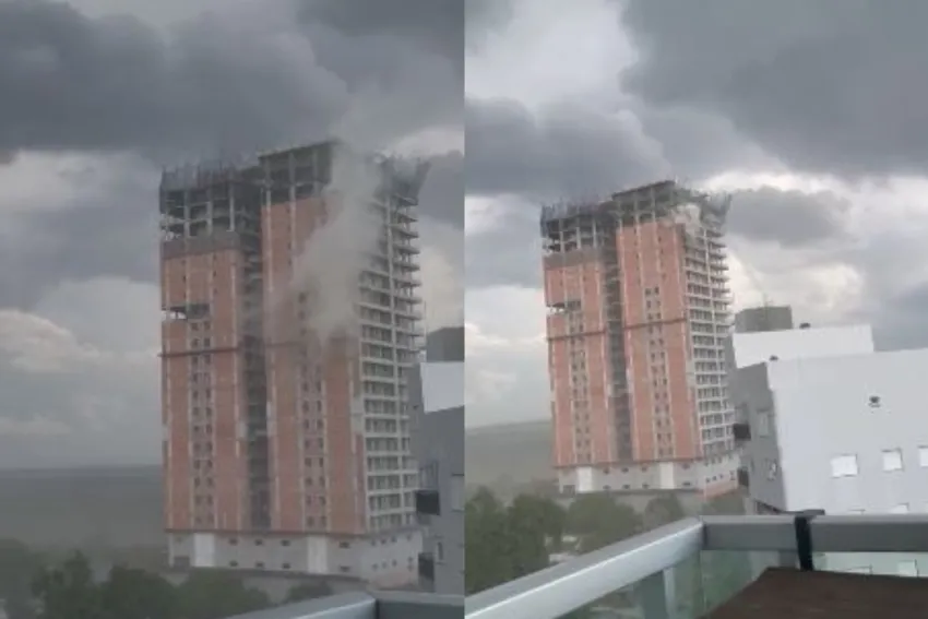 En el video que se difundió por personas que atestiguaron el hecho, se puede ver como la máquina se cae del edificio y golpea contra la construcción para generar daños visibles. No se reportaron personas lesionadas.