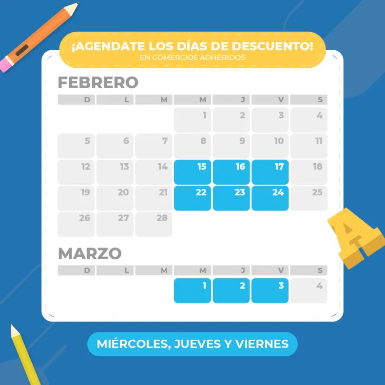 A través del NBCH, se ofrecen 4 cuotas sin interés, con Tarjeta Tuya, con un 40% de bonificación y con un tope de reintegro de $7000 (durante la vigencia de la promoción), para la compra de artículos de librería, papelería, indumentaria escolar, zapatería, marroquinería y óptica, en los comercios adheridos.