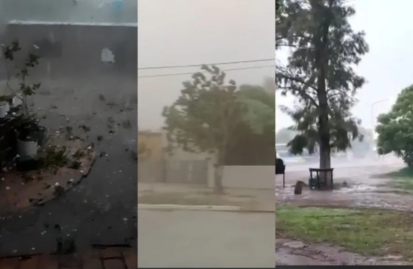 En el caso de General Pinedo se puede ver en las imágenes que no solo se registraron vientos o lluvias sino también caída de granizo.