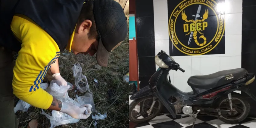 Los efectivos de la División Microtráfico y Operaciones Sáenz Peña hallaron 142 envoltorios de nylon que dio un total de 40 gramos de cocaína y dos envoltorios con marihuana. También encontraron dinero en efectivo $ 22.500 pesos, un celular y una moto Corven 110 cilindradas.