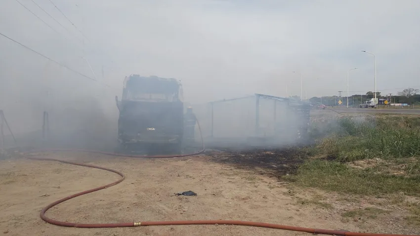El impactante incendio comenzó en horas de la siesta del domingo, en la Ruta 16, kilómetro 14, frente al ingreso al supermercado Libertad. El fuego consumió gran parte del colectivo de la empresa ERSA, pero afortunadamente no hubo lesionados.