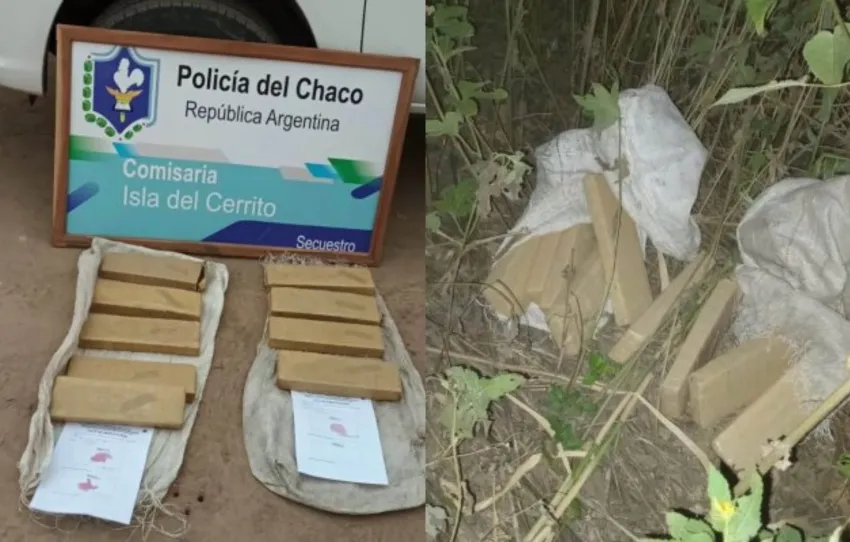 Recorrieron el lugar y hallaron abandonada dos bolsas arpilleras que contenían 9 envoltorios similares a ladrillos con una sustancia vegetal. Arribaron efectivos del Departamento de Consumos Problemáticos y realizaron la prueba Narco test, que arrojó resultado positivo a cannabis sativa con el peso de 9,928 kilogramos.