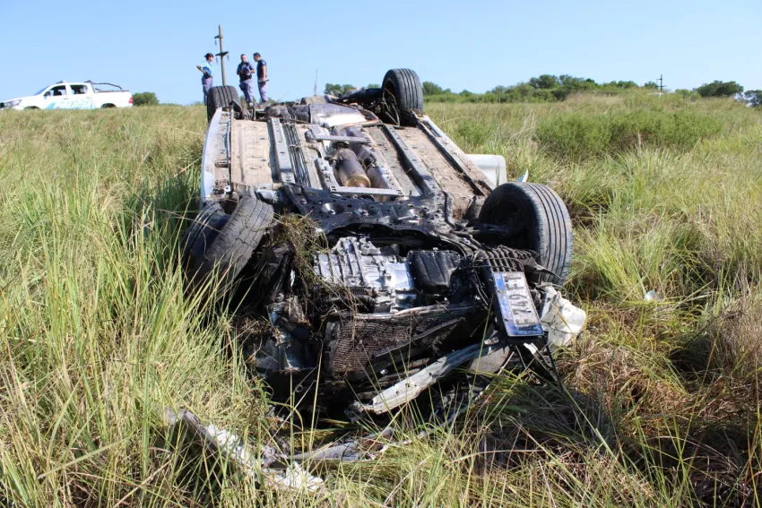 Según informó la Policía, el automóvil Toyota, modelo Corolla, despistó y terminó con la totalidad de sus ruedas hacia arriba con importantes daños en su estructura.