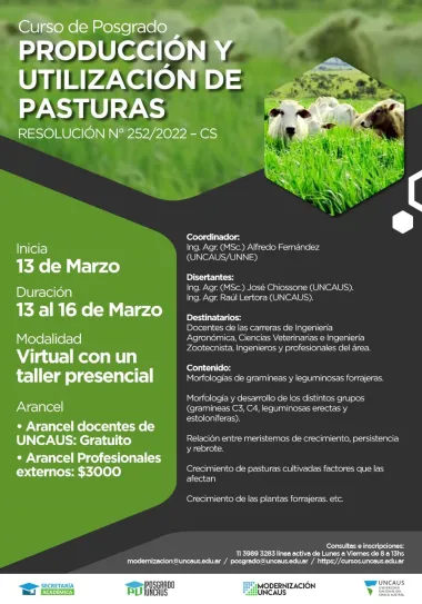 UNCAUS abrió inscripciones para el Curso de Posgrado: producción y utilización de pasturas
