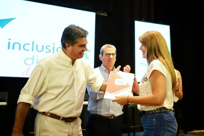 En el Centro de Convenciones Gala, el gobernador Jorge Capitanich y la vicegobernadora Analía Rach Quiroga concretaron la entrega de 225 tarjetas Tuya Recargables. Las mismas fueron destinadas a los trabajadores de Barranqueras, Colonia Benítez, Fontana, Isla del Cerrito, Margarita Belén, Puerto Tirol, Puerto Vilelas y Resistencia. Esto se da en el marco del programa Inclusión Digital Docente que brinda financiamiento a tasa cero para la adquisición de computadoras.