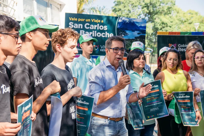Acompañado de jóvenes que gracias al Municipio el año pasado pudieron tener su viaje de fin de curso, el Intendente detalló que la iniciativa desarrollada en 2022 "permitió que cerca de 2500 egresados tengan esa fiesta especial sin cargo". Además, mencionó que 10 divisiones de escuelas primarias viajaron a Carlos Paz, al igual que 10 cursos a Bariloche.