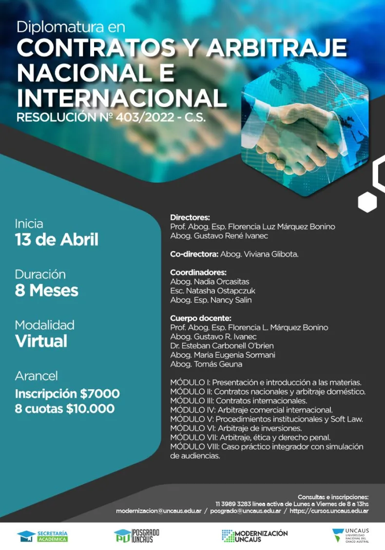 UNCAUS abrió inscripciones para la Diplomatura en Contratos y Arbitraje Nacional e Internacional