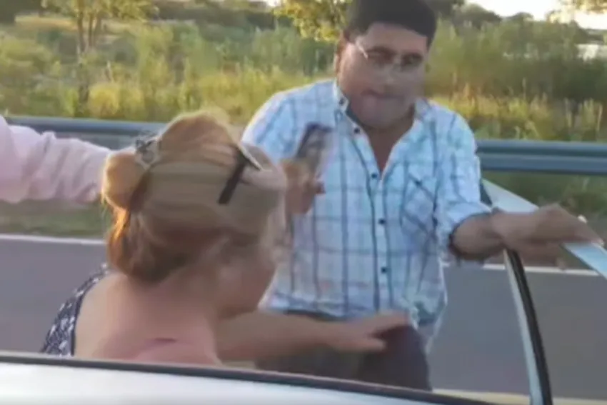 En ese momento, "La esposa se pone en el medio, estando embarazada para provocar que yo hiciera algo o reaccionara y el finalmente me termina agrediendo con varios golpes. Me patea, me tira una piña, lo corro y él se va hacia atrás".