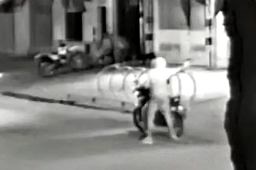 Se trata de una grabación de las cámaras de seguridad de la zona, donde se muestra cómo los dos agresores llegan en una moto, uno de ellos se baja para disparar al menos 14 veces contra la persiana del comercio. Luego, se acerca a la puerta para dejar el cartón con la amenaza para Messi.