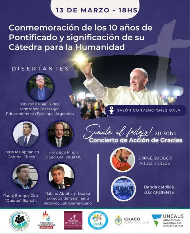 UNCAUS invita a la conmemoración de los 10 años de pontificado y significación de su cátedra para la humanidad
