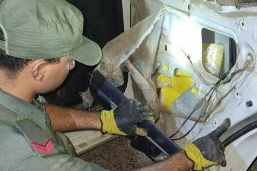 El automóvil tenía la droga pegada en las puertas del vehículo y, gracias a "Dilan", el perro antinarcóticos, lograron detectar los estupefacientes.