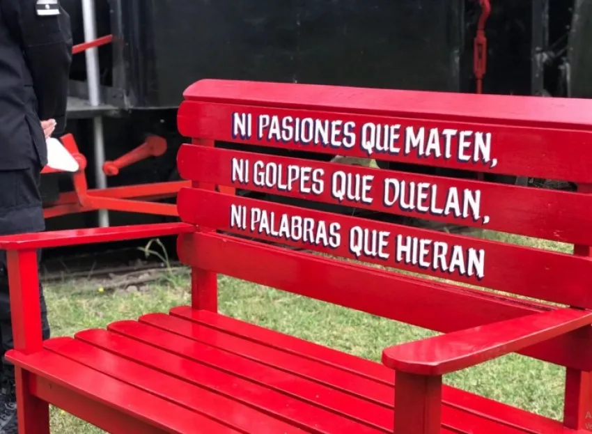 La idea migró a Argentina por iniciativa de la licenciada y especialista en violencia familiar Elisa Mottini, que hoy ya son más de 400 los bancos rojos a lo largo de todo el país.