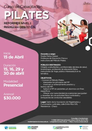 UNCAus abrió inscripciones para Curso de Pilates Reformer nivel 1