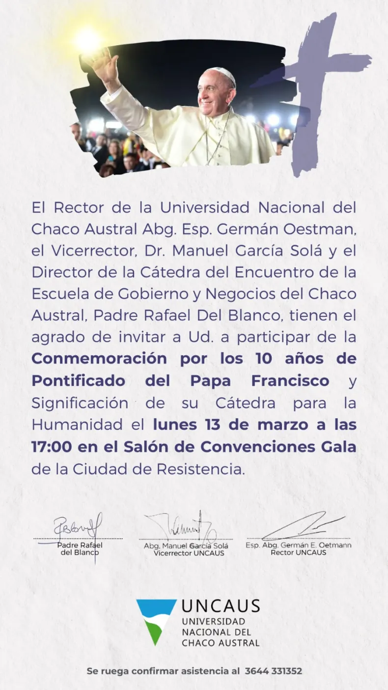 La Universidad Nacional del Chaco Austral (UNCAus) invita a participar de este evento que se realizará en el salón de convenciones Gala, ubicado en la ciudad de Resistencia, el día 13 de marzo a las 17 horas (modificación de horario).