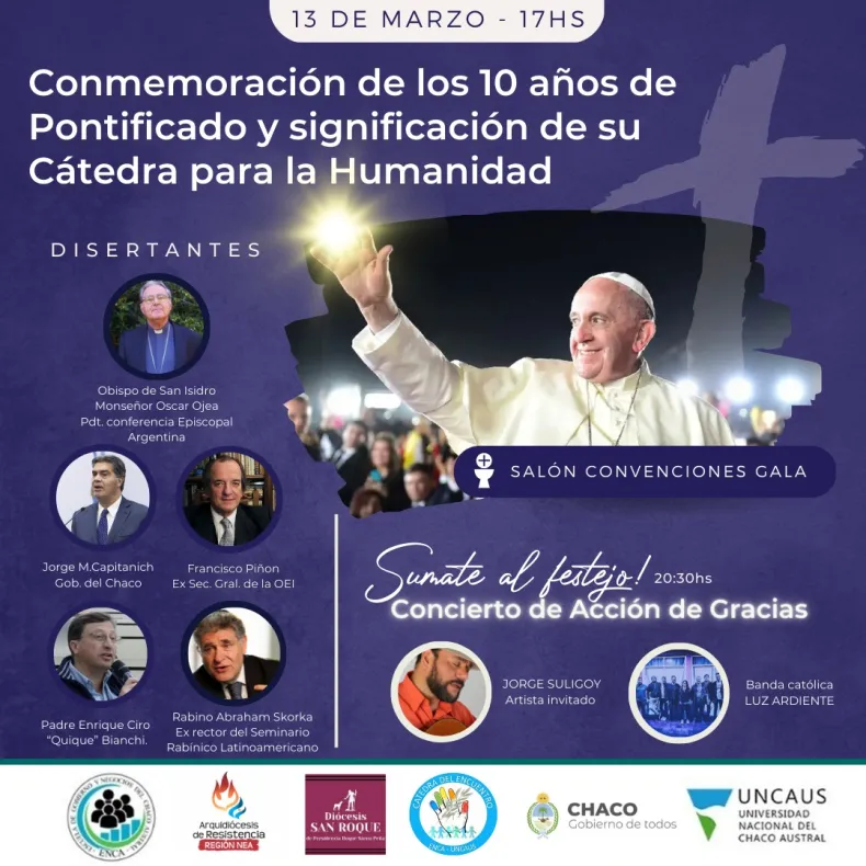La conmemoración es organizada por la Universidad Nacional del Chaco Austral, la Escuela de Gobierno y Negocios del Chaco Austral (ENCA), la cátedra del Encuentro de ENCA UNCAUS, el Gobierno de la provincia de Chaco, la Arquidiócesis de Resistencia- Región NEA y la Diócesis San Roque de la ciudad de Presidencia Roque Sáenz Peña.
