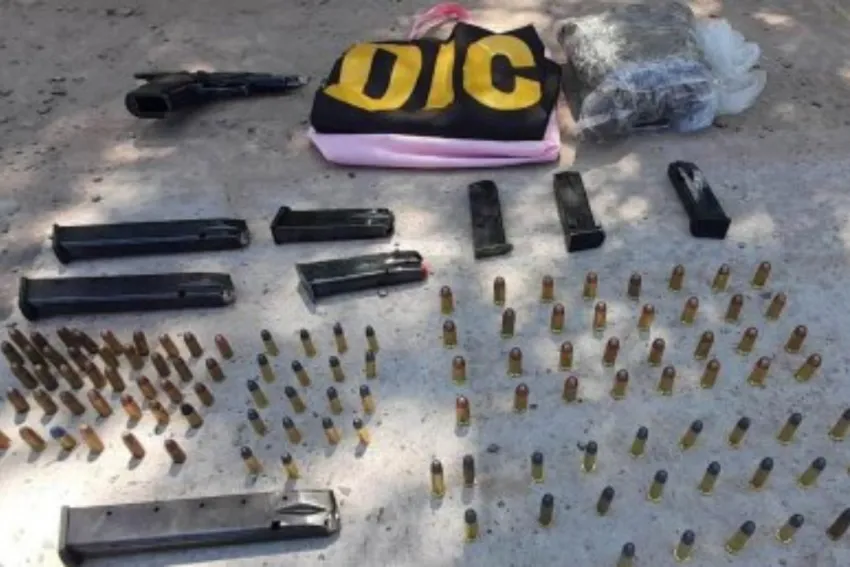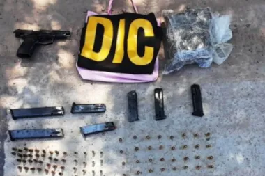 Al interceptarlo, los oficiales hallaron dentro de su bolso una pistola 9 milímetros y varios cargadores y cartuchos, también una "bolsa con vegetal similar a estupefacientes". Es por esto por lo que solicitaron personal de la División Drogas Peligrosas.