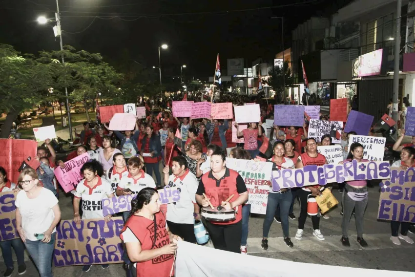 Una gran columna de mujeres con carteles y mensajes de distinta índole se concentraron en la plaza central de la ciudad para luego marchar por las calles de la ciudad y hacer oír su voz, su reclamo, su pedido de justicia por las mujeres asesinadas. Entre ellas recordaron a Yaqueline Romero, Antonela Altamirano, la joven maestra jardinera que fue asesinada este 8 de marzo por su ex pareja y por tantas otras que mencionaron.