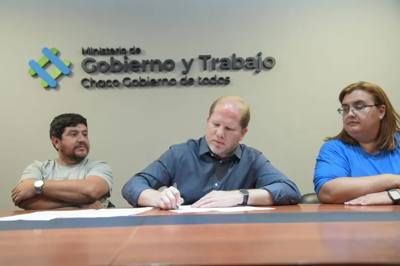 El ministro de Gobierno y Trabajo, Juan Manuel Chapo, junto al subsecretario de Trabajo, Ariel Ledesma, firmó un convenio con Adrián Bellomi e Isaías Alegre de la Confederación General del Trabajo (CGT) y Perla Portal, de la Unión de Personal Civil de Nación (UPCN). El documento establece la creación de un curso de capacitación destinado al departamento de Policía del Trabajo.