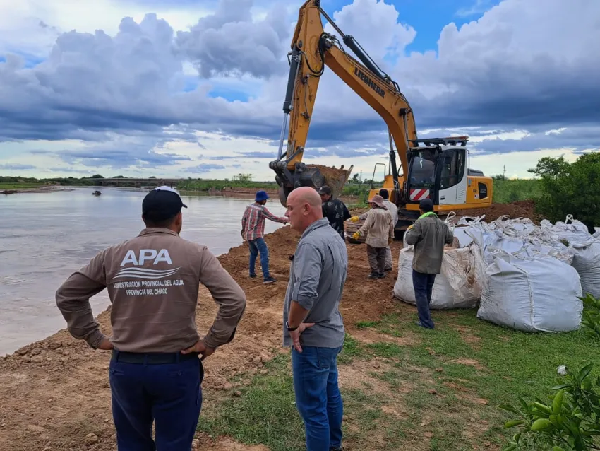 El presidente de la APA Daniel Pegoraro verificó los trabajos que se realizan en el río Bermejo a la altura del Puente Lavalle, junto con la Dirección de Vialidad Nacional (DVN) y la Dirección de Vialidad Provincial (DVP). El objetivo es conformar una defensa para evitar que la corriente del cauce continúe erosionando y proteger las viviendas de los alrededores y la ruta nacional N° 95.