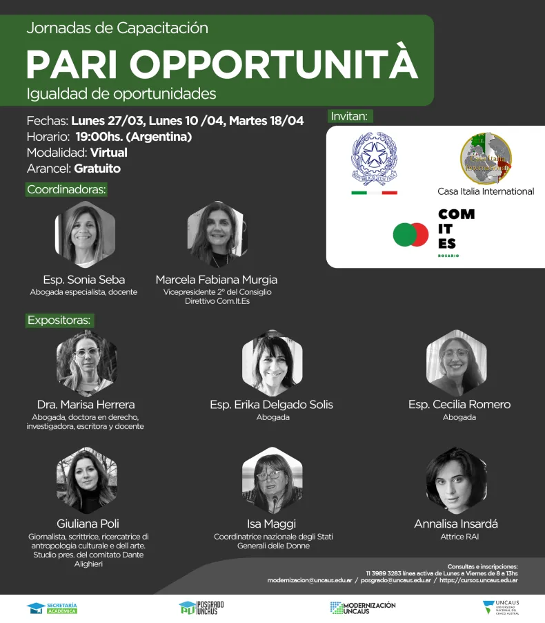 UNCAUS invita a Jornada de Capacitación: Pari opportunità- igualdad de oportunidades