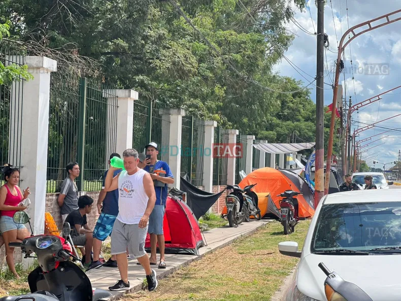 Las personas que se acercaron al estadio con carpas, toldos y gazebos esperan la confirmación de las entradas y aguardan para adquirir sus entradas.