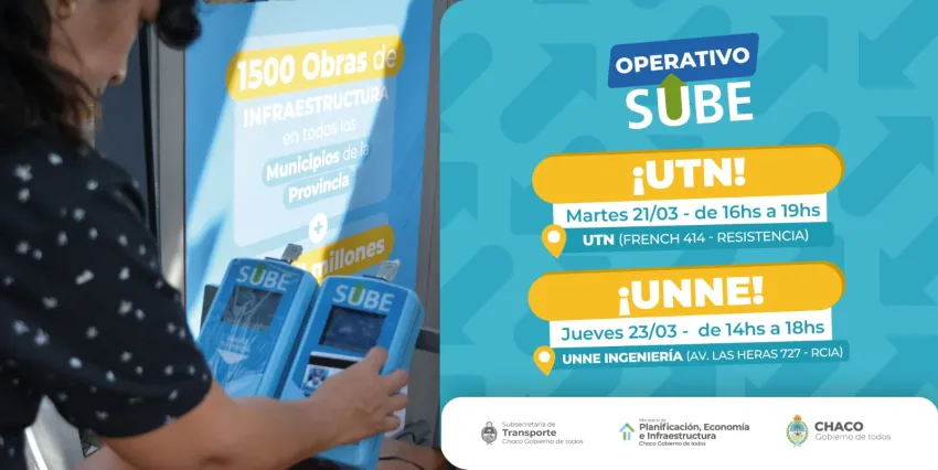 El Ministerio de Planificación, Economía e Infraestructura, a través de la Subsecretaría de Transporte, realizará operativos SUBE en Resistencia para que estudiantes puedan tramitar su credencial y acceder a las tarifas diferenciadas que se implementan en la provincia.