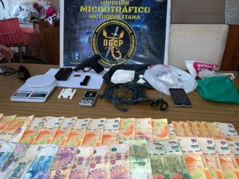 Además de la droga, los efectivos hallaron un arma que tenía pedido de secuestro: una pistola calibre 22 cargada con seis cartuchos. Finalmente, el hombre fue detenido por las causas de "supuesta infracción a la Ley de Estupefacientes" y "supuesta infracción al artículo 189 bis del Código Penal".