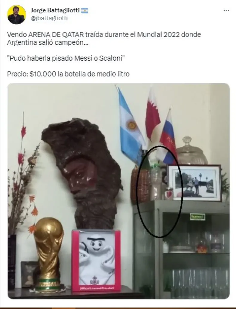"Pudo haberla pisado Messi o Scaloni": un periodista santafesino vende arena que trajo de Qatar